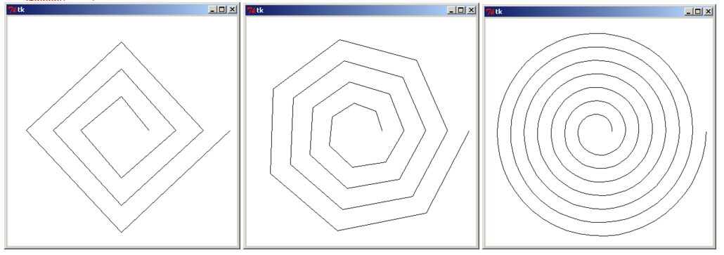 13. Sestavi funkcijo, ki z lomljeno črto nariše približek n-krat zavite spirale na k krakih. Središče spirale naj bo v sredini okna. Spirala naj bo toliko raztegnjena, da bo najbolj desna točka blizu desnega roba okna.