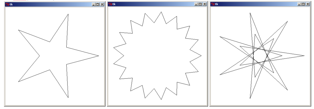 14. Sestavi funkcijo, ki nariše n-krako zvezdo. Središče zvezde naj bo v sredini okna. Točke naj bodo od središča izmenično oddaljene r1 in r2.