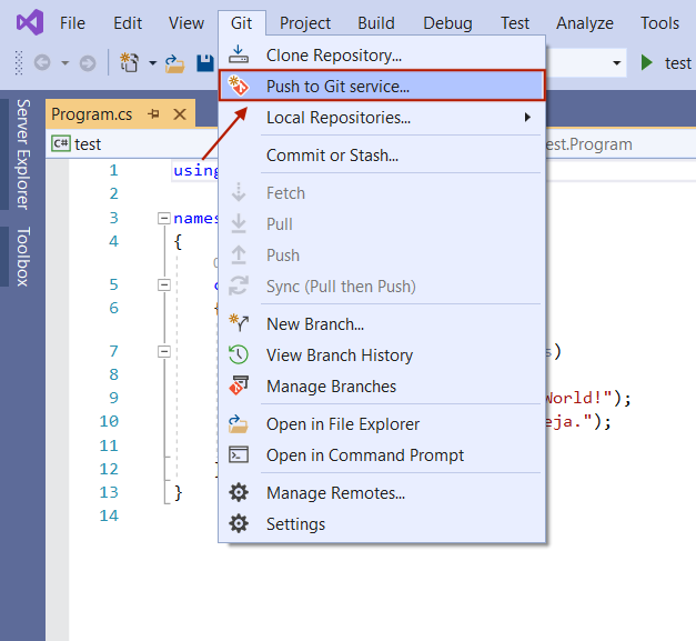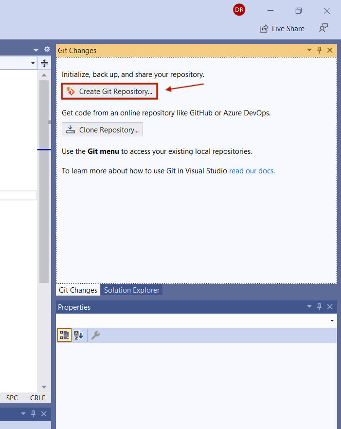 Odpremo Visual Studio in ustvarimo poljubno datoteko (primer: konzolna aplikacija). Nov repozitorij lahko inicializiramo na več načinov: